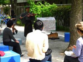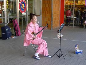 三線演奏(古河駅にて) |